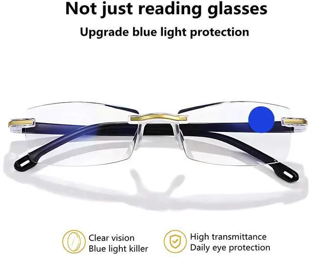 Rimless Women's/Men's Blue Light Glasses: They're stylish blue light reading glasses for Unisex style and practical for work or play. The adjustable frame ensures a comfortable fit for different face shapes, Enjoy sharper vision and reduced eye fatigue, whether indoors or outside ^^
