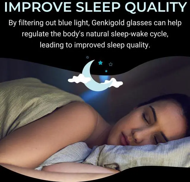ENHANCE SLEEP QUALITY: Genkigold blue light blocking glasses are crafted with premium materials, offering an affordable solution to improve your sleep by effectively filtering out blue light emitted from screens ^^