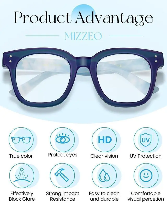COMFORTABLE TO WEAR: Our fashionable anti-blue light reading glasses feature an imported plastic frame, which is sturdier than regular plastic. The integrated nose pad adds extra comfort by alleviating pressure on sensitive areas like the bridge of the nose, ensuring a secure fit without slipping. For a vintage pair that seamlessly blends fashion and function, MIZZEO glasses are the ideal choice ^^