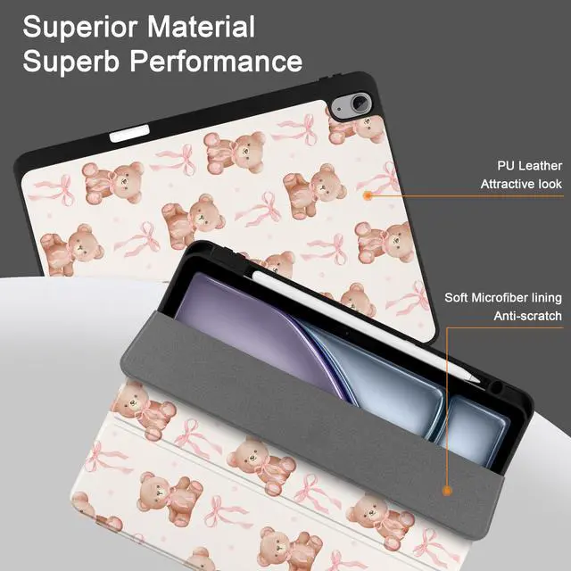 Number: A2898 / A2899 / A2900). Not compatible with any other tablet models. Please look on the back of your iPad and find the model number. ^^ Full ProtectionMade of Premium PU exterior, microfiber lining and soft TPU back cover. Provide full body protection against shocks, drops and scratches. ^^ For Apple Pencil ChargingBuilt-in Pencil holder & adapter slot, designed for charge/pair with the Pencil Pro & Pencil (USBC). Grab your Pencil & adapter effortlessly whenever you want, easily to carry your pencil with your device. (Case only, other accessories not included! ) ^^ Professional DesignThe inner layer provides honeycomb grid pattern air cushion that can release over 80 percent heat, extend iPad useful life and provide better shock absorption function. Also Multi-layered painting process that is guaranteed to withstand normal usage while looking amazing. ^^ Convenient FunctionSensitive Auto Wake/Sleep, More energy saving. Slim Lightweight Tri-fold Stand with viewing and typing angle. 65 video mode can act as a screen stand; 30 input mode acts as a keyboard stand. Solid construction but no bulky, Precise cutouts easily access to all buttons.