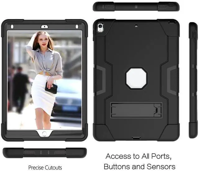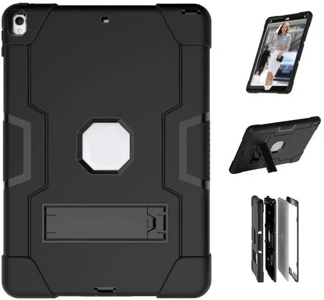 Jaorty 3 in 1 Hybrid Case for iPad Air 3 10.5" & iPad Pro 10.5" - Heavy Duty Rugged Stand, Shockproof, Anti-Slip & Scratch, Black/Black