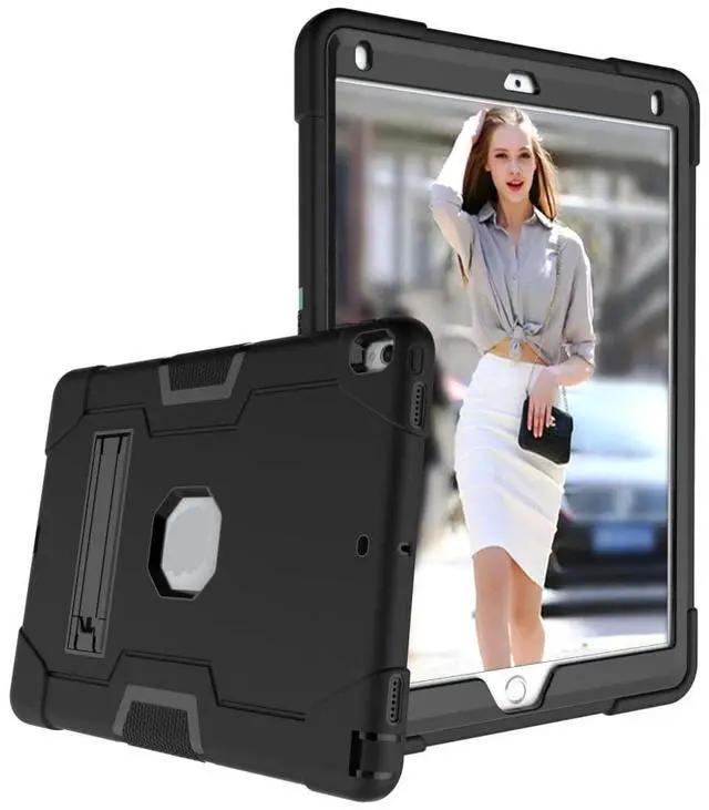 Material: Soft Silicone and Hard PC - Durable, Safety and Non-Toxicity, Lasting color and not easily deformed. ^^ Features anti-slip and soft hand feeling with great flexibility ^^ Provides a perfect protection to your iPad against shocks, damages, dusts and scratches. ^^ Precise cutouts for improved access to all ports, buttons, cameras, speakers, and mics.