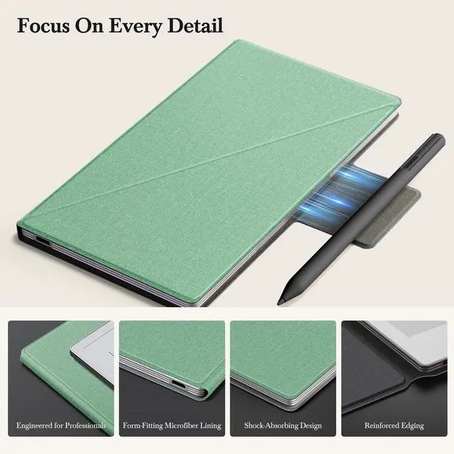 Professional Folio: The dedicated pen loop features a magnetic back slot that keeps your Marker securely stored while maintaining a perfectly flat surface. This innovative design enables seamless 180 lay-flat positioning and stable desktop sharing during meetings. Combined with the elegant notebook-style folio, it offers complete portability, protection, and practicalitykeeping your workspace organized and your reMarkable always ready for professional use. ^^ Instant On/Off, Zero