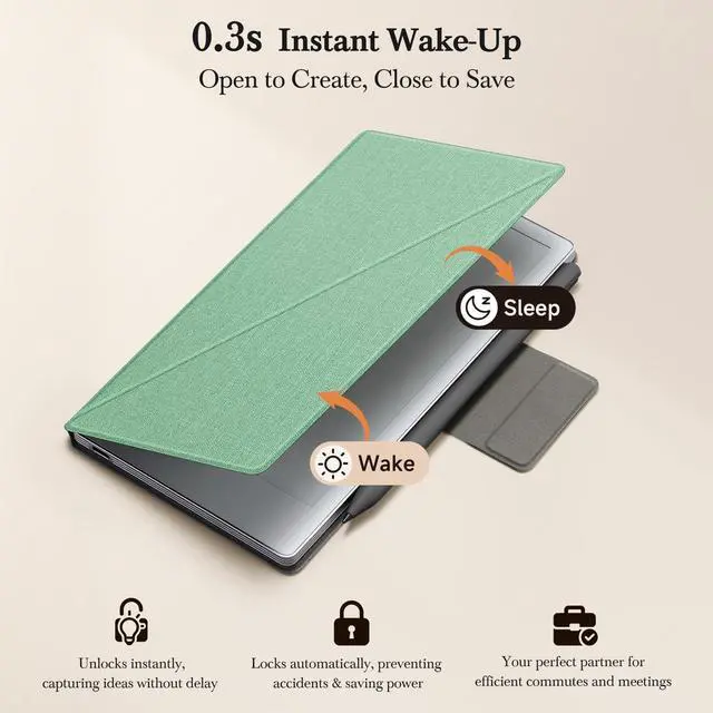 Waiting: Experience seamless workflow activation. The smart cover enables instant wake-up upon opening (responsive in < 0.3 seconds), capturing sudden inspirations without boot-up delays. It auto-locks upon closing, preventing pocket mishaps and saving battery, making it ideal for hectic commutes and efficient daily use.