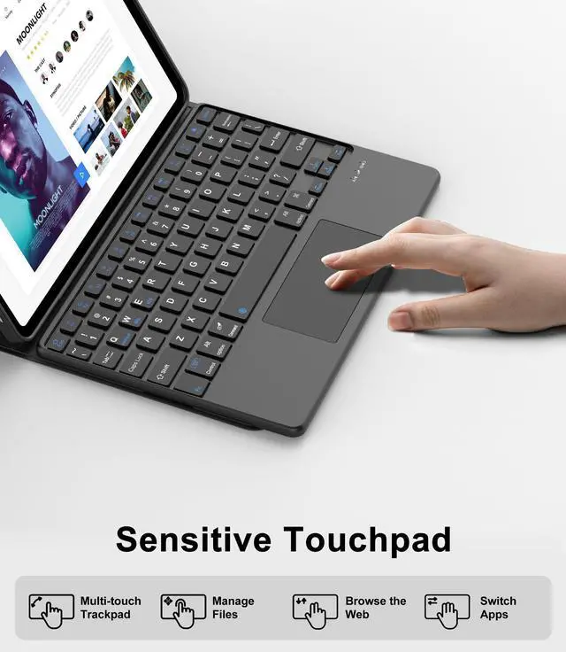 Gift ChoiceIf you are at a loss for gifts ahead of Christmas, Thanksgiving, Mother's Day, Father's Day, or birthday, then a tablet case with magnetic keyboard is a thoughtful gift for parents/children/friends/colleagues! How to connect to Bluetooth? 1. Please fully charge the keyboard and turn it on (usually 2-3 hours). 2. Press the keys Fn+C to turn on the Bluetooth of the keyboard. 3. Turn on the Bluetooth of the Tablet. 4. Find and select "Bluetooth Keyboard", it will automatically connect.
