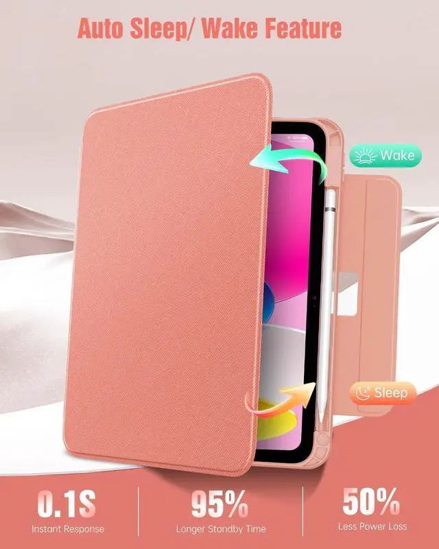 Magnetic Clasp: Magnetic smart cover supports auto wake/sleep function, helping reduce battery drain and extend standby time. The powerful magnetic clasp secures your A16 ipad case when closed