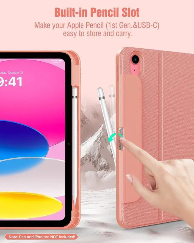 Pencil Holder: The iPad 11th generation case comes with a built-in pencil holder. It securely carries and protects your Apple Pencil (USB-C) and Pencil 1st Generation, you can store it in the holder to prevent it from being lost or damaged while walking or outdoors. A hole is designed behind the holder for pushing your pencil out easily.