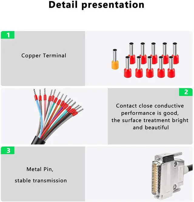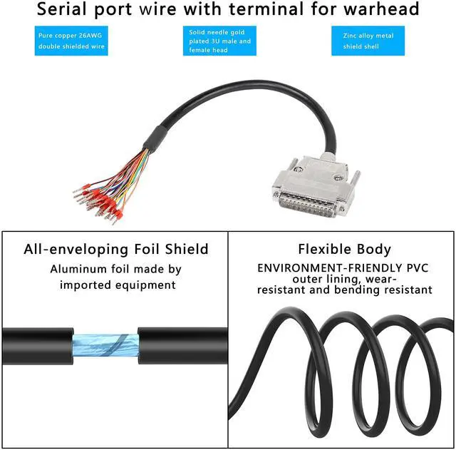 DB25 connector is used to connect the interface with serial port network function, and supports serial port data and transparent transmission. It is suitable for all kinds of equipment with DB25 connector, such as printer, computer, POS, industrial control equipment, etc. DB25 pin head double shielded data wire, pure copper 26awg double shielded wire, with strong anti-interference ability. Punching needle gold-plated 3U male and female head, machine injection molding. The wire head is pressed with the terminal. The terminal is pressed firmly, not easy to pull out, and the wiring is more convenient.