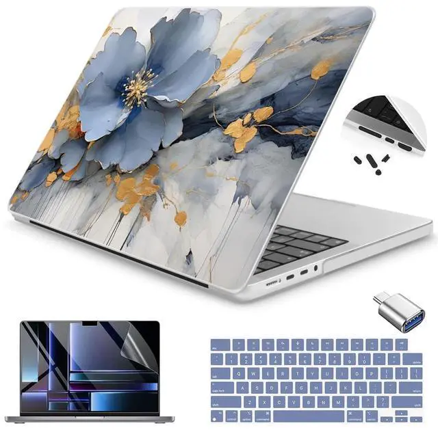 CASE FOR MACBOOK PRO 14 INCH - Only Compatible with MacBook Pro 14 inch M5 M4 M3 M2 M1 (2021 2023 2024 Release) with Liquid Retina Display & Touch ID, Model: A3112 A3401 A3185 A2918 A2992 A2779 A2442. ^^ [PRECISE CUT OUT ]-Easy access to all ports and features, you can plug your charger, cable or headset without removing the case. ^^ [EASY INSTALLATION AND FIT]-A two-piece wnap on design for easy installation and removal. Allows your laptop to open more than 90 degrees and precise cutouts allow full access to all functions, fontrols, and Buttons. Plug your charger, cable, or headset without removing the case. ^^ DURABLE MATERIAL -Case is made of high-quality plastic materials with excellent flexibility, replacing your computer to withstand everyday fingerprints, scrapes, and scratches. ^^ [5IN1 BUNDLE]-Package include hard shell cover (include top and bottom) + silicone keyboard cover + screen protector + USB 3.0 adapter +dust plug.