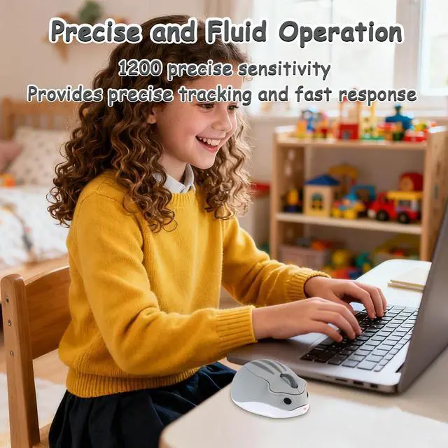 (Note: The usb mouse is powered by 1*AA batteries (batteries not included) ). ^^ High PrecisionThis cute computer mouse bluetooth has an advanced optical resolution sensor with 1200 sensitivity to provide precise tracking and smooth cursor movement for ultra-high precision and zero-latency operation, helping you to improve your work efficiency. ^^ Compact & LightweightThis wireless grey mouse measures 4.13 * 2.87 * 1.57 inch and weighs only 2.12 oz, which is compact and lightweight, perfect for carrying around on the go. ^^ Comfortable TouchThis cartoon mouse is ergonomically designed for a comfortable grip, even after long hours of use, your wrist won't feel any pain, perfect for those who use the portable optical mouse for a long time.