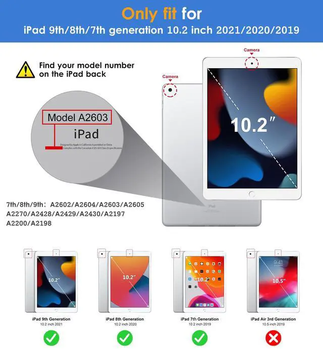 Specifically designed for the Apple iPad 9th/8th/7th generation 10.2" 2021/2020/2019 released(Model