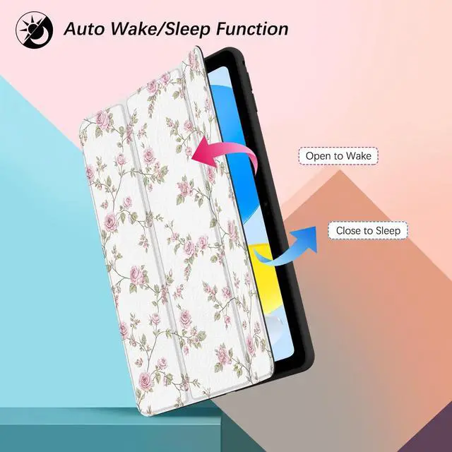 ^^ [Auto sleep/wake]: The built-in powerful magnetic strip on the front cover makes your tablet wake up automatically when it is opened and puts the device to sleep when it is closed. No wasted battery energy and extended battery standby time.