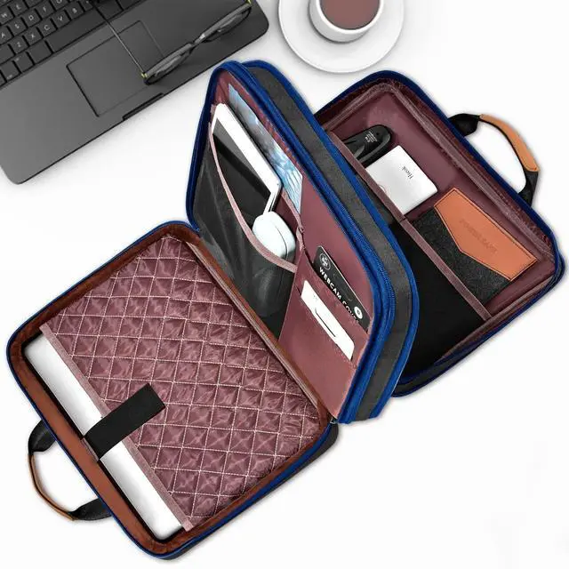 Internal dimensions: 13.78 x 10.04 x 1.57 / 3.74 inches; Compatible with MacBook Air/Pro 13" & 14", Surface Book 3/2/1 13.5", Latitude 14, Elitebook 13.3 /Spectre X360 13.3 /Envy 13/Stream 13/Stream 14/Pavilion 14, ThinkPad X1 Carbon IdeaPad 13/14 and most popular 13 inch, 13.3 inch, 13.5 inch and 14 inch notebooks chromebooks Tablets. ^^ Variable Capacity - Laptop is never the only thing you need to take. The slim laptop business briefcase owns two compartments, a laptop compartment to make your digital devices organized such as laptop, pad, phone, chargers and cables etc, and other expandable compartment for more such as jacket, umbrella, some books and water bottle. Flexible load for daily use, business and traveling wherever you go conveniently. ^^ 360-Degree Protection - This laptop handbag comes with Full-Protection design which use thick cushioning low rebound foam around whole laptop compartment and a ultra-thick soft protective ridge around the zipper to ensure your laptop will remain safe from drops, bumps, dents, scratches and spills, like the car airbag. The laptop case surface is made of waterproof oxford, which obstructs water and vapor effectively.