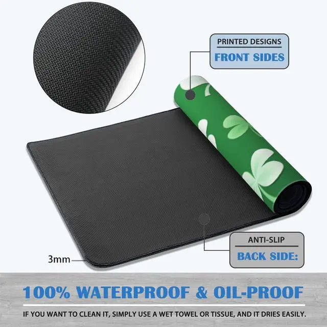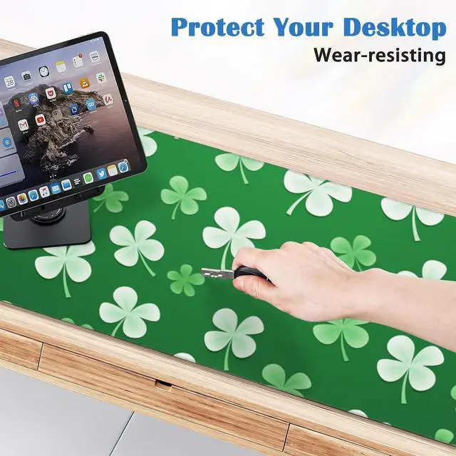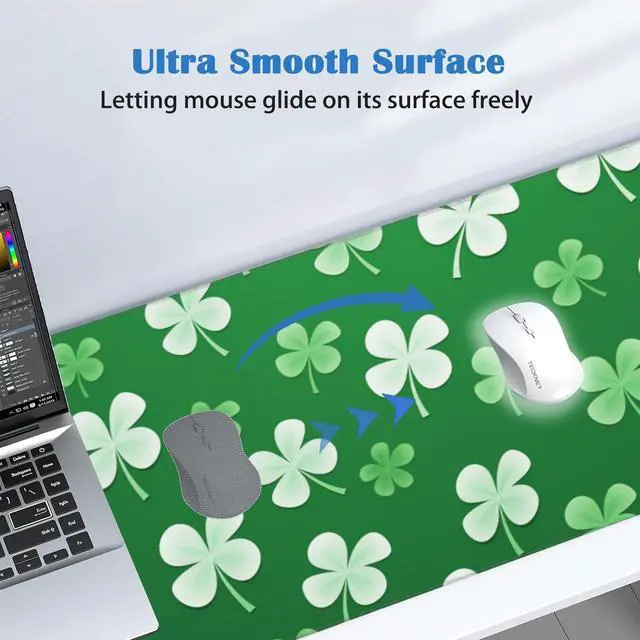 St Patrick's Day Mouse Pad Gaming Ireland Symbol Mousepad Desk Mat,Smoothing Fabric Mousepad for Fluid Control,Ultra-Stable Non-Slip Rubber Base Mouse Pad,Stitched Edges(31.5x15.7 in)