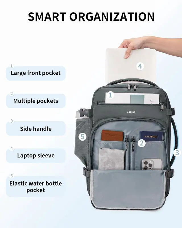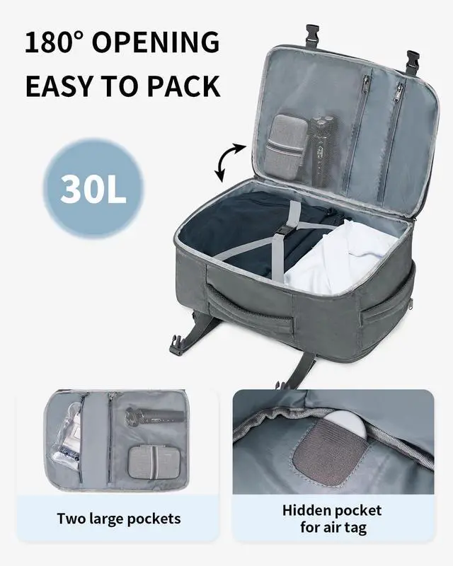 SAY NO TO BAGGAGE FEES: ECOHUB 30L Airplane travel backpack have the perfectly sized to avoid baggage fees. The underseat carry on bag measures 18x13x 7.9 inch just 1.6 lbs. Suitable for all major airlines like spirit, frontier, easyJet. PATENT PENDING) ^^ 180