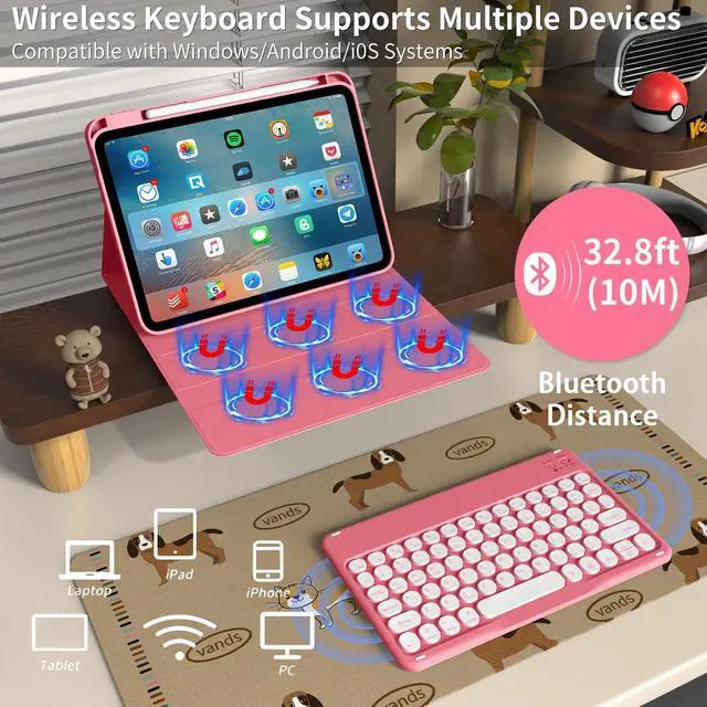 • Magic Detachable KeyboardFor ipad(A16) 11th/ 10th generation. 11/10.9inch Keyboard case is magnetic and keyboard can be strongly attached to the case or detach completely. When you do not need the keyboard can be stored away, easy to carry it on the go. Equipped with useful shortcut keys keyboard is easy, fast and stable to connect via BT, reconnect immediately turning it on.