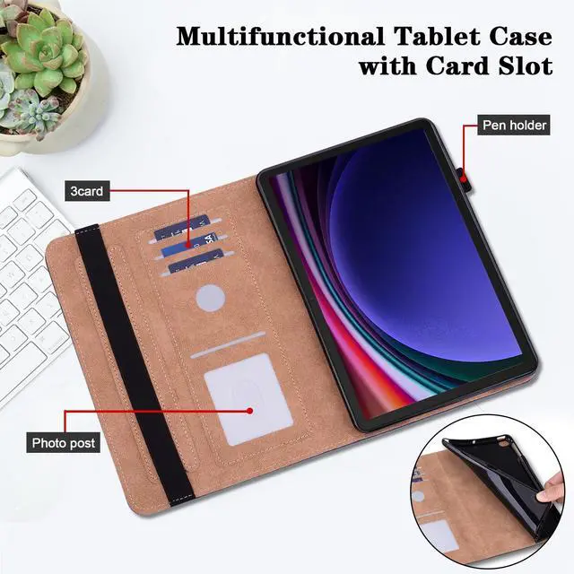 Large Capacity: The galaxy tab s9 fe 5g case leather built-in three card slots and photo post to store credit cards, business cards, and other essentials; pen holder design perfectly accommodates a touch screen pen for added convenience ^^