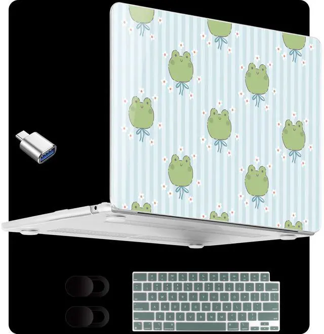 MEEgoodo for MacBook Air 15 inch Case (M4/M3/M2) 2025 2024 2023, Cover Fit Model(A3241/A3114/A2941) for 15.3-inch Laptop, Clear Shell with Keyboard & Webcam Cover, Frog & Striped