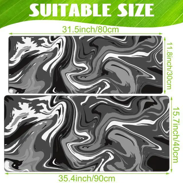 Eflxamz Desk Mat, Black White Ink Liquid Waves Desk Pad, Abstract Waves Large Gaming Mouse Pad with Non-Slip Base and Stitched Edge, 31.5"x11.8"