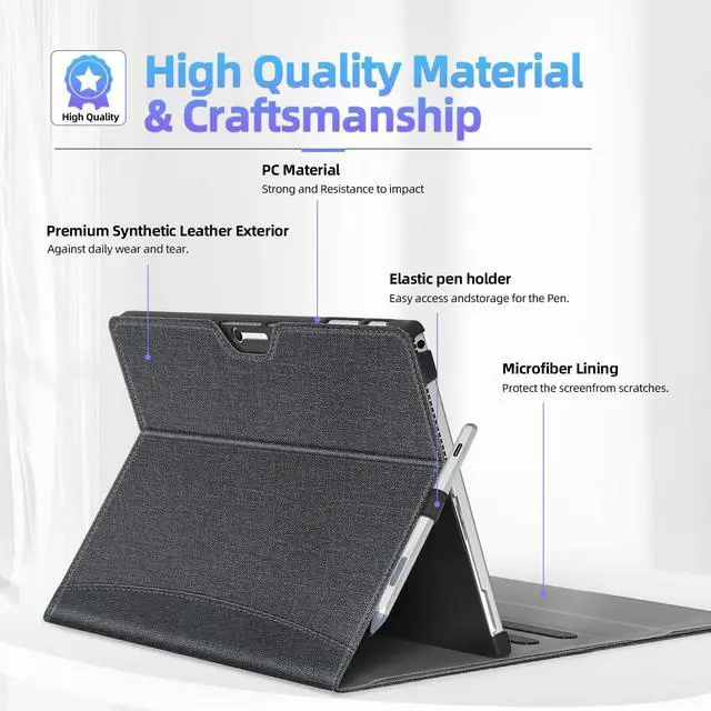 SSSGRGB Case fit 12.3 in Microsoft Surface Pro 7/7+/6/5/4, Multiple Angle Viewing Portfolio Business Cover with Stylus Holder & Pocket, Compatible with Type Cover Keyboard, Black