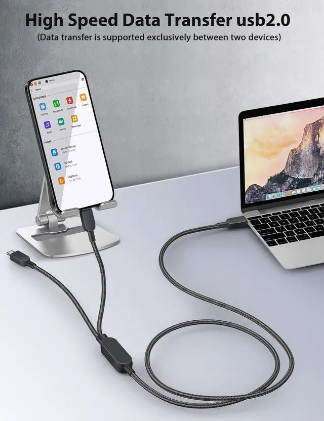 Charging Cable: This dual usb c charging cable, can power two USB C devices simultaneously from a single USB-C port, compatible with iPhone 17 16, iPad, Android, Samsung Galaxy, MacBook and other Type-C devices. high-speed charging delivers up to PD 140W Max output with support for 120W/ 100W/ 65W/ 60W/ 30W/ 25w/ 18w power options, ensuring blazing-fast charging for all your devices ^^