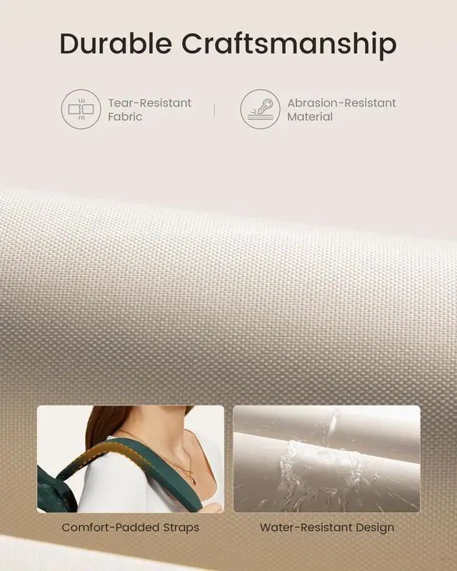 ^^ Comfy & SturdyThe shoulder belt and back are equipped with high-quality foam pads, which are breathable and pressure reducing. The large capacity and elastic side pockets can hold about 42 oz water cups. See more product details