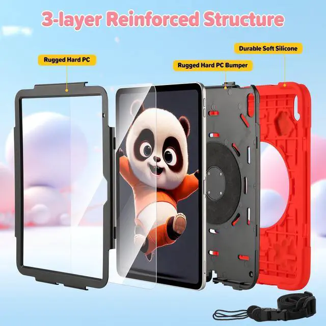 Rotating Stand&Portable Shoulder Strap: This Cool 3D Panda case with 360 Rotating Stand and hand holder is designed for the iPad 11th/10th, providing different angles to meet your requirement, that will be convenient for viewing, typing and drawing, testing in outdoor. The shoulder strap made of high quality material, is sturdy enough to bear heavy duty 11th 10th generation iPad, can be detachable and adjustable, perfect to carry it on car, outdoor drawing, travelling and hiking for iPad 10th /11th gen case kids boys. Hang it anywhere for your entertainment, makes you using case for iPad 11th Gen/10th Generation easily.