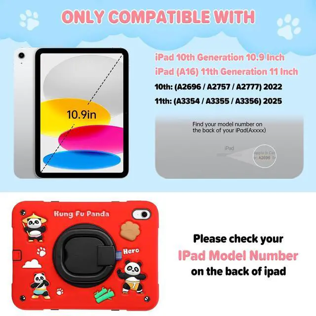 3D Cartoon Design: This cool Panda cover for iPad (A16) 11th generation 11 inch 2025, iPad 10th generation 10.9 inch 2022 has a cute and vivid cartoon pattern, which is loved by boys and girls. The unique and cool Panda Warrior design makes your tablet look distinctive and adds a lot of enjoyment to your life. This generation 11th /10th for iPad case is also great for teenagers and family to use. ^^ Comes with 9H Tempered Glass