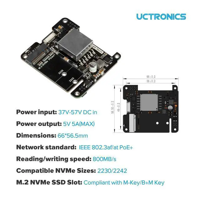 Compact layout and small size: This Raspberry Pi NVMe hat is suitable for most cases, also compatible with uctronics pi rack mount(U6123-B08F9X528J, U6195-B09D7RR6NY, U6264-B09STTXWZZ)
