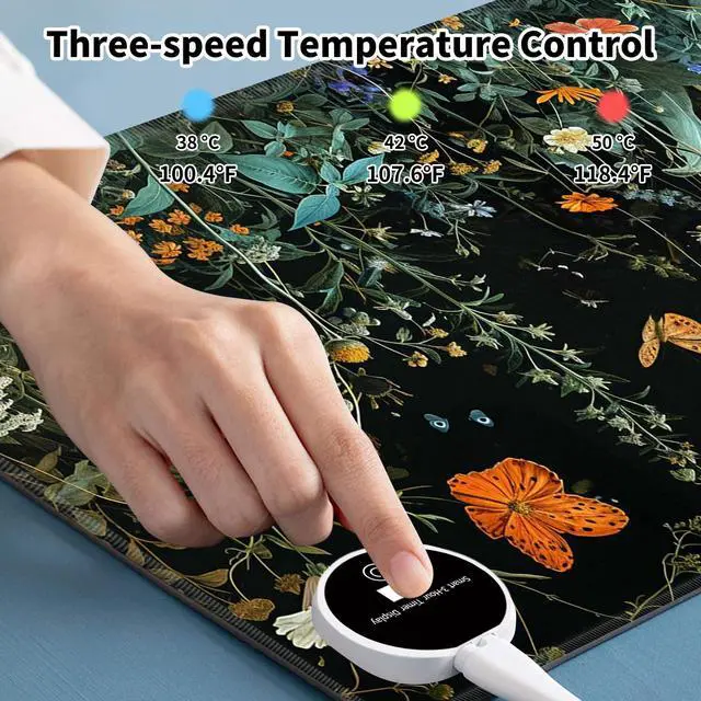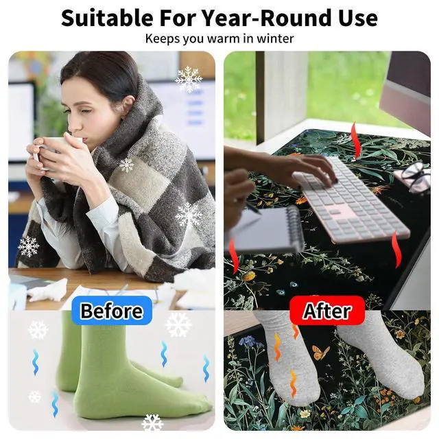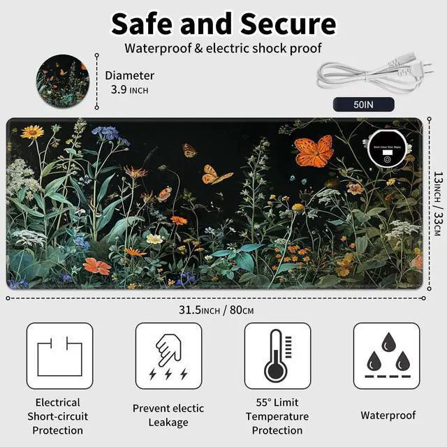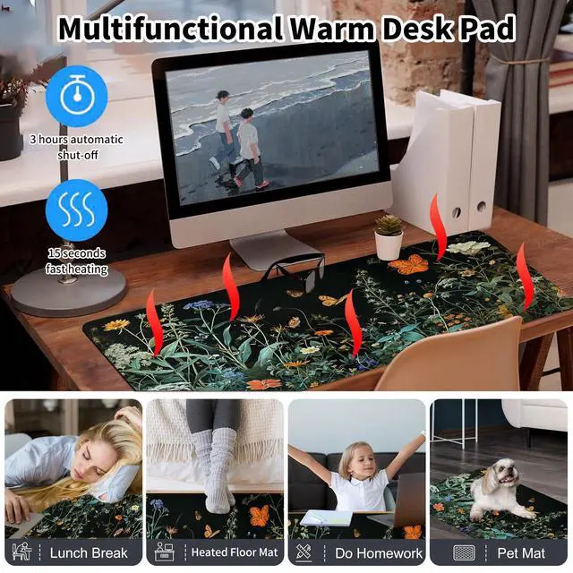 FEATURES: Three gear temperature control95% lager area heating15 Seconds quick heatSafe automatic power off: Automatic shutdown within 3 hours1. Layers of Security & Waterproof & Electric Shockproof: The leather desk pad protector is made of protective film, waterproof leather, heating sheet, non-slip insulation bottom plate. 2.