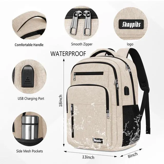 Skaypibs Backpack: Where Style Meets FunctionalityRevolutionary Zipper Design - Experience the difference with Skaypibs' metal zippers. Our backpack features double-sided, ultra-smooth zippers with reinforced stitching for enhanced leak protection, ensuring your belongings stay safe while eliminating the frustration of zippers caught in fabric. Designed for Every Occasion - Crafted with feedback from thousands, the laptop bookbag boasts the perfect blend of comfort, style, and functionality. Its sleek, fashionable design makes it versatile for women/men on the move, whether it's for work, travel, or sports. sturdy and practical, it's your everyday essential. Organizational Excellence - With three strategically placed zipper pockets in the front compartment, the backpack with laptop compartment allows for effortless organization of personal items. Each item finds its place, offering you meticulous service and organization like never before. Feature-Rich for the