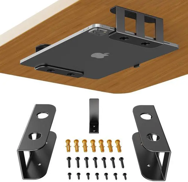 Quality Material: The bracket is made of high-quality metal material, and the body is coated with powder, which better ensures the durability and reliability of the bracket. It can be easily installed under or on the side of the table. The use of screws for fixation has stronger load-bearing capacity, is safer and more stable than traditional bonding methods, effectively preventing valuable equipment from sliding and damage, allowing you to use the equipment with peace of mind ^^