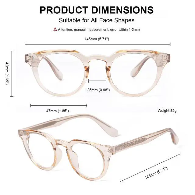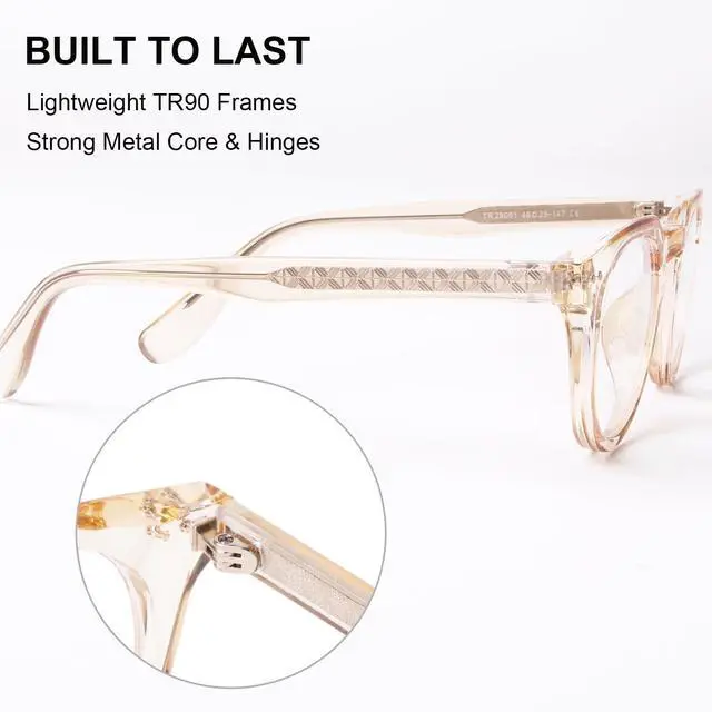 All-Day Comfort: These unisex round blue light glasses for women men boast lightweight yet rugged TR90 frames, shatterproof, corrosion-resistant, with reinforced hinges and metal core. These womens blue light glasses will hold up all day, whether youre working in office, gaming, or scrolling. Clear champagne frame adds subtle luxury, elevating everyday and special occasions. ^^ 99% Blue Light Blocking +