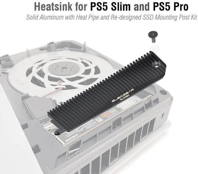 EL-P5SC Heatsink for PS5 Pro and Slim Internal NVMe M. 2 SSD 6.7 mm High-end Heat Pipe & Solid Aluminum Heatsink Snag Fit with the Middle Frame of PS5 Disc and Digital Delicate Utilization of PS5 Cooling Fan for being Silent A re-designed Mounting Post and Standard M. 2 Screw Pre-divided Silicon Thermal Pads and