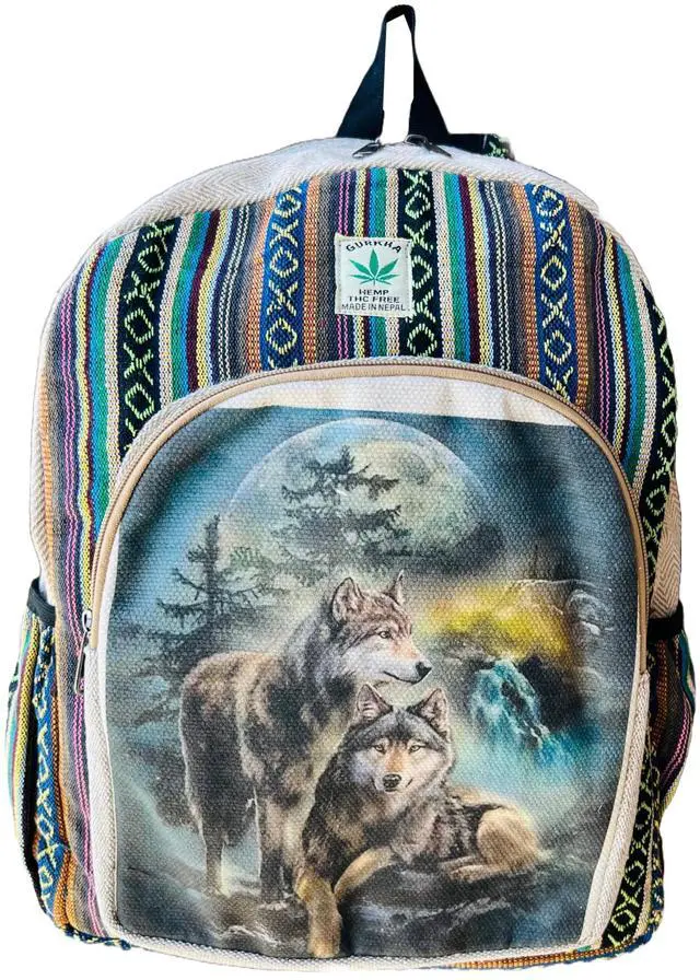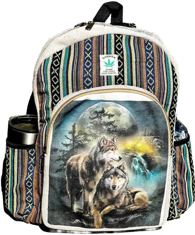 DescriptionGurkha beautifully designed large backpack is made from natural hemp fiber and natural heavy-duty cotton that are well known for their strength and durability. Inner lining has soft cotton material to make this bag sturdy and extra durable. This multi-color stylish backpack has pockets of different sizes, useful for all of your different sized goods. It has enough space to carry all your personal belongings including Textbooks, Laptop and other necessities. This backpack gets softer to touch as you use it more, yet it retains its durability. We use pure Hemp and Cotton.