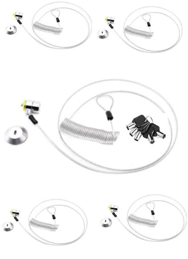 LORADAR 5Pack 10-foot retractable anti-theft steel cable lock, suitable for laptops, tablets, monitors, and mobile phones