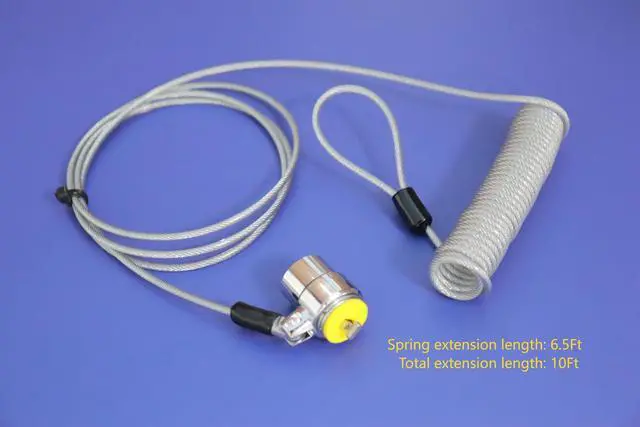 The lock head T-tail and double feet are made of stainless steel and brass, unlike other materials on the market. They are strong and resistant to breakage. The steel wire rope has moderate rebound force and is coated with an environmentally friendly, odorless TPU coating. Industrial-grade double-sided adhesive provides strong adhesion to most smooth surfaces. The 7*19 strand steel wire has a total length of 10 feet when extended.