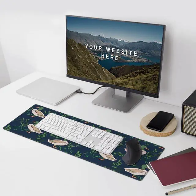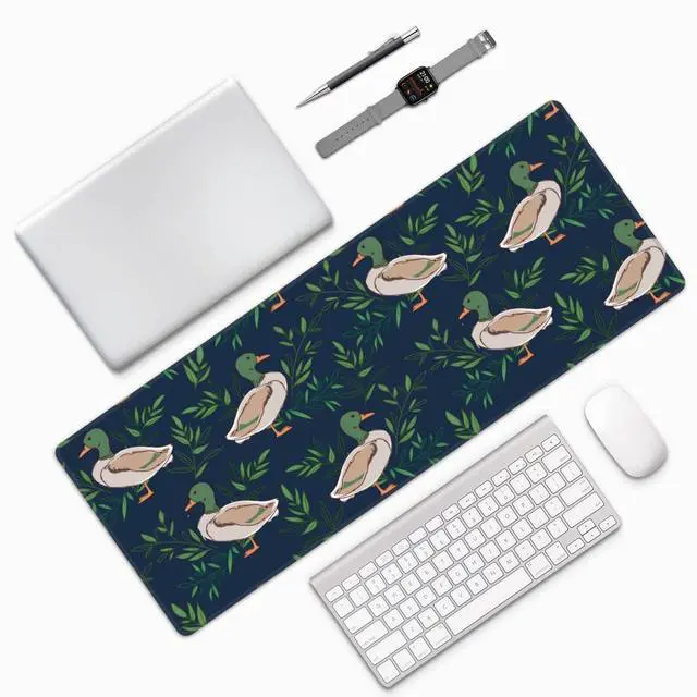 Famame Laptop Mouse Pad Cute Farm Animal Mallard Duck Desk Mat with Stitched Edges 31.5X 11.8 inch Non-Slip Large Keyboard Rubber Writing Table Mat for Office Home