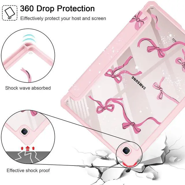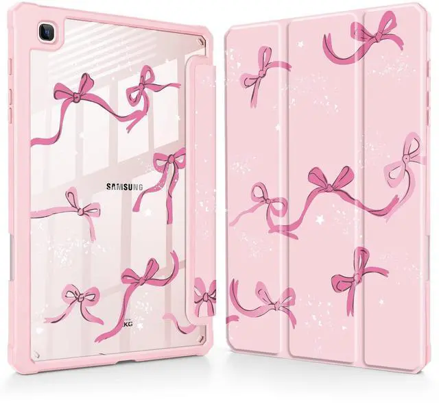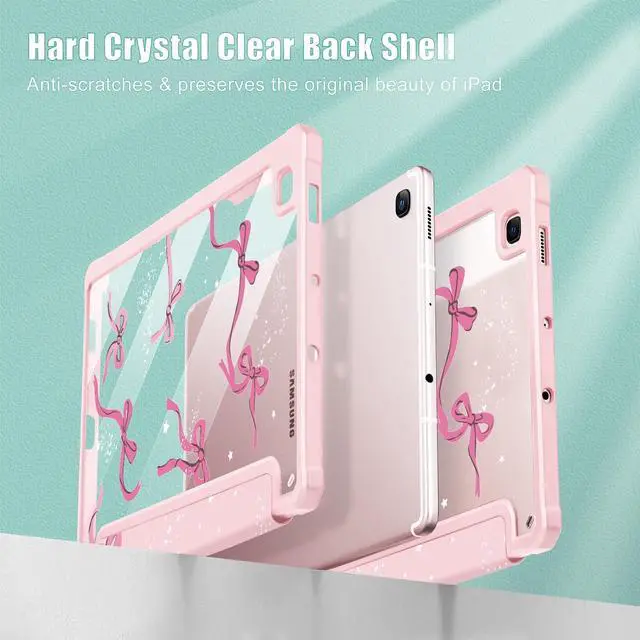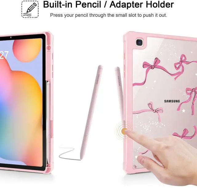 Tuiklol for Samsung Galaxy Tab S6 Lite 10.4 inch 2024 2022 2020,Buit in S Pen Holder with Shockproof Protective Cover Clear Transparent Back Shell Auto Wake/Sleep, Bow-Pink