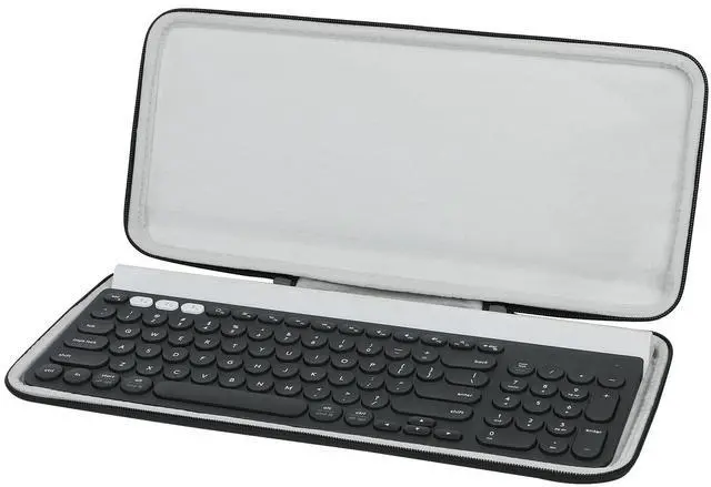 This k780 hard case, the interior is made of high quality velvet, the soft inner structure ensures the protection of the logitech k780 keyboard. The logitech wireless multi device keyboard has a hard case with a mesh design on one side to store your k780 wireless keyboard accessories and soft storage on the other side for your logitech k780.