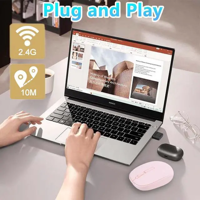 Type-C + USB-A Dual-Port Wireless MouseThis portable wireless mouse for laptop is compact and portable, suitable for both left-handed and right-handed users. The small USB mouse uses ergonomic design, smooth curves, and comfortable feel make it an ideal gift for family, friends, classmates, and children. This silent optical wireless mouse offers resolution, high-precision cursor control, and precise tracking, ensuring fast and efficient work. This silent travel laptop mouse uses a 2.4G wireless connection with a Type-C + USB-A dual-port receiver for wide compatibility with a wide range of devices, with an effective range of up to 10 meters.