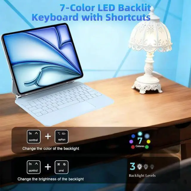 CompatibilityThis keyboard case, designed specifically for iPad 11th(A16, 2025)/10th Generation 2022, models include 2025 iPad 11th A16 (A3354, A3355, A3356), 10th Generation 10.9" 2022 (A2696, A2757, A2777). ensures a perfect fit by checking your iPad's model number on the back, starting with 'A. ' ^^ 7-Color Backlit KeysAdjusting 7 backlight and 3 levels of brightness ensures clear visuals in every setting, enhancing your immersive experience. ^^ Click AnywhereElevate your iPad 11" (A16, 2025) experience with our precise, versatile keyboard. use every millimeter of the extended, ultra-sensitive multi-touch trackpad to tap, pinch, and swipe with perfect precision and navigate your iPad in a whole new way.