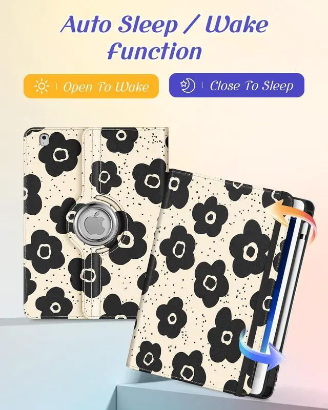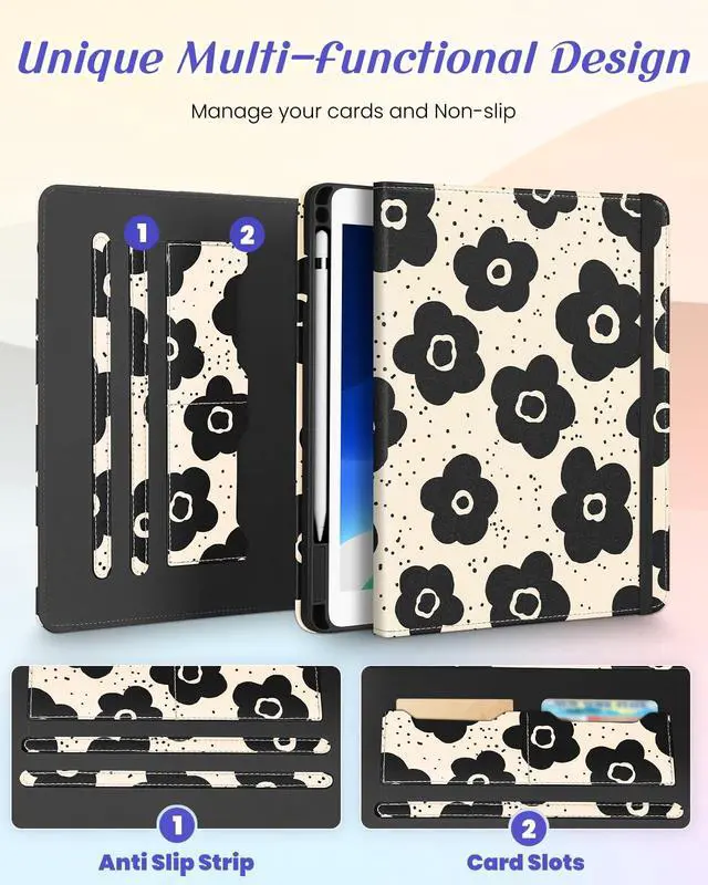 Kidcube for iPad Air 3rd Generation Case/Pro 10.5 Inch Case - Women Girls Cute Rotating Stand Folio Cover with Pencil Holder & Card Slot Black Flowers Floral Design Cover for iPad Pro 10.5''/Air 3rd