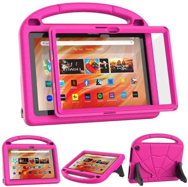 Patamiyar Kids Case for 10.1in Tablet with Screen Protector, Not for TCL iPad 10.1inch Tablets -Lightweight Shockproof Kids-Friendly Case with Handle Stand -Rose Pink