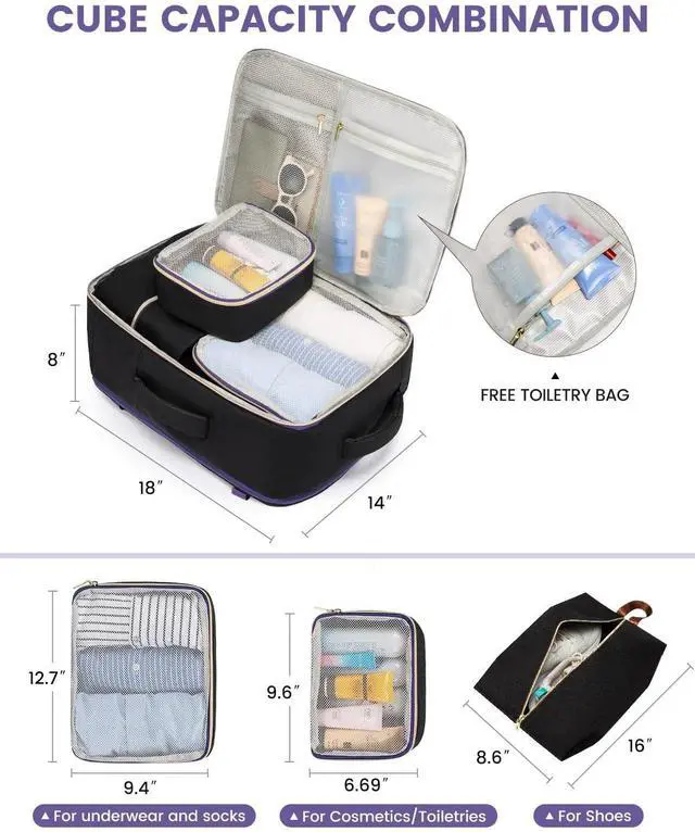 Made of high-density waterproof material, it's perfect for your damp clothes or toiletries, ensuring everything else stays dry. ^^ Fly with Ease Sized right at 18*14*8 inches, it's not just a favorite for major airlines like American Airlines, Delta, and JetBlue; it's also a breeze at security checks. Slide it under your seat or pop it in the overhead bineither way, it's a snug fit. ^^ Tough Build, Easy on Your BackThose premium zippers? They're designed to withstand the rough and tumble of travels. Reinforced stitching ensures longevity.