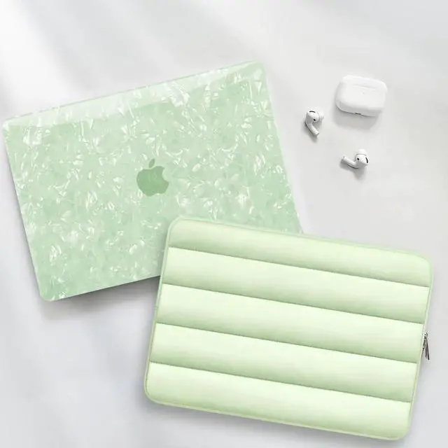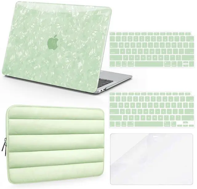 Protection Kit: Everything your Laptop needs in one convenient package. This bundle includes 1 durable green pearl top case, 1 matte clear bottom case, 1 stylish matching Laptop sleeve, 1 keyboard cover, and 1 screen protector, offering comprehensive protection from all angles