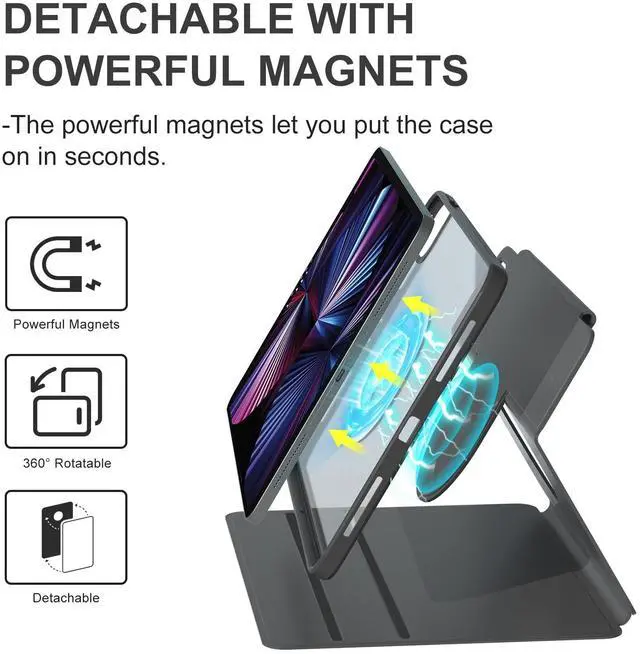 Protective Case for iPad Pro 11"No Pen included! The protective cover is designed for iPad Pro 11 2022/2021/2020/2018 4th/3rd/2nd/1st Gen. Only fit for (Model No. A2435/A2759/A2761/A2762)(Model No. A2377/A2459/A2301/A2460) (Model No. A2228/A2068/A2230/A2231)(Model No. A1979/ A1980/ A2013/A1934). It's Not compatible with any other devices. Please check the model number of your iPad back bottom. ^^ Washable & Stain-resistant CaseThe premium leather is washable. You can easily get a new look on your case with a single tissue, even if it's stained with coffee, oil, or other grime. ^^ 2 in 1 Detachable & 360 RotationThe detachable and powerful magnet allows you to use your ipad both horizontally and vertically.