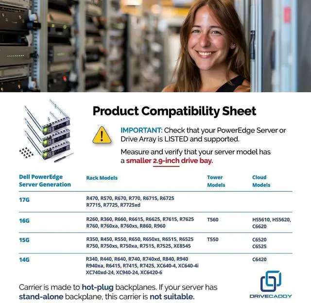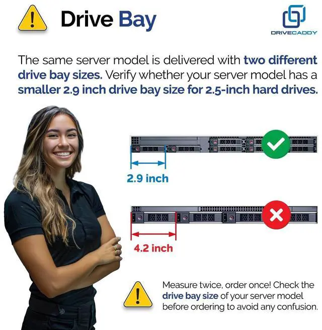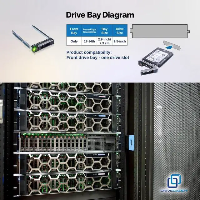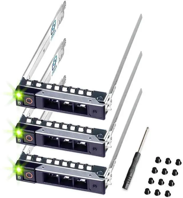 Quick and easy setup with DRIVECADDY Hot-Plug caddy! Press the release button to open the release handle and slide the hot plug caddy inside or outside of your server. The Hot-Plug DRIVECADDY tray 2.5 is for connecting a hard drive to a server backplane. Your server backplane is connected to a PERC RAID controller. After installation, you can adjust or create RAID volumes from the PERC RAID controller menu. DRIVECADDY Design and Packaging! DRIVECADDY 3-PACK Drive Enclosure Bracket Compatible with DELL PowerEdge for 2.5 -inch SAS, SSD, NVMe, or SATA Hard Drives 16 Mounting Screws ScrewdriverThe same PowerEdge server type can have two different sizes of drive bays.