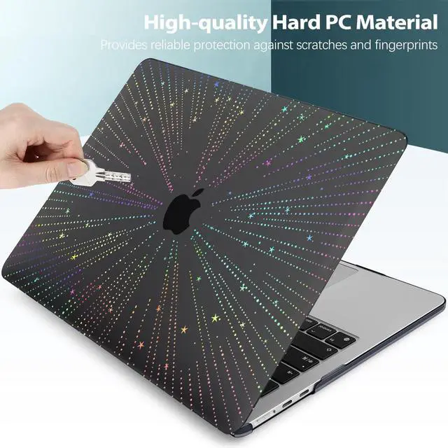 KEROM Clear Black Case with Patterned Design, tailor-made for your MacBook Air 15 inch from 2023 to 2025 (Models: M4 M3 M2 A3241/A3114/A2941). Designed with an ultra-thin plastic hard shell case with a silicone keyboard protector, it provides complete protection for your valuable laptop. Designed with the unique ultra-crystal feature, this case allows you to showcase the original sleek and modern aesthetic of your MacBook Air while keeping it safe. Whether you're working or playing, the KEROM case is the perfect companion for your MacBook Air 15. In addition to its stylish appearance, this case is highly durable and scratch-resistant. Made from high-quality plastic, it is precision-engineered to resist bumps, scratches, and fingerprint smudges encountered during daily use, ensuring your MacBook Air stays looking as good as new. The KEROM team pays great attention to details, ensuring every corner and opening is meticulously designed for a perfect fit. This design does not interfere with the daily use of the ports or the opening and closing of the device. Whether you prioritize simplicity or practicality, this KEROM MacBook Air 15 inch cover case will meet your needs. It protects your MacBook Air from accidental damage while allowing your personality and taste to shine through.