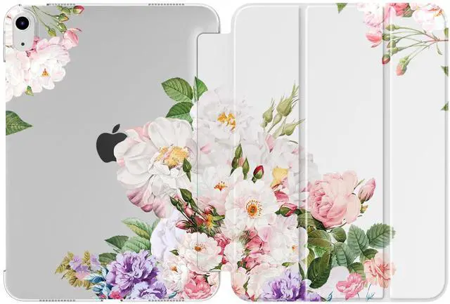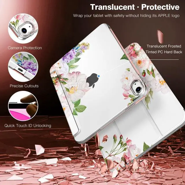 TiMOVO Case for iPad (A16) 11th Generation 11 Inch 2025/iPad 10th Generation 10.9 Inch 2022, Slim Stand Cover with Hard Translucent Back, Support Touch ID, Auto Wake/Sleep, Blooming Bouquet